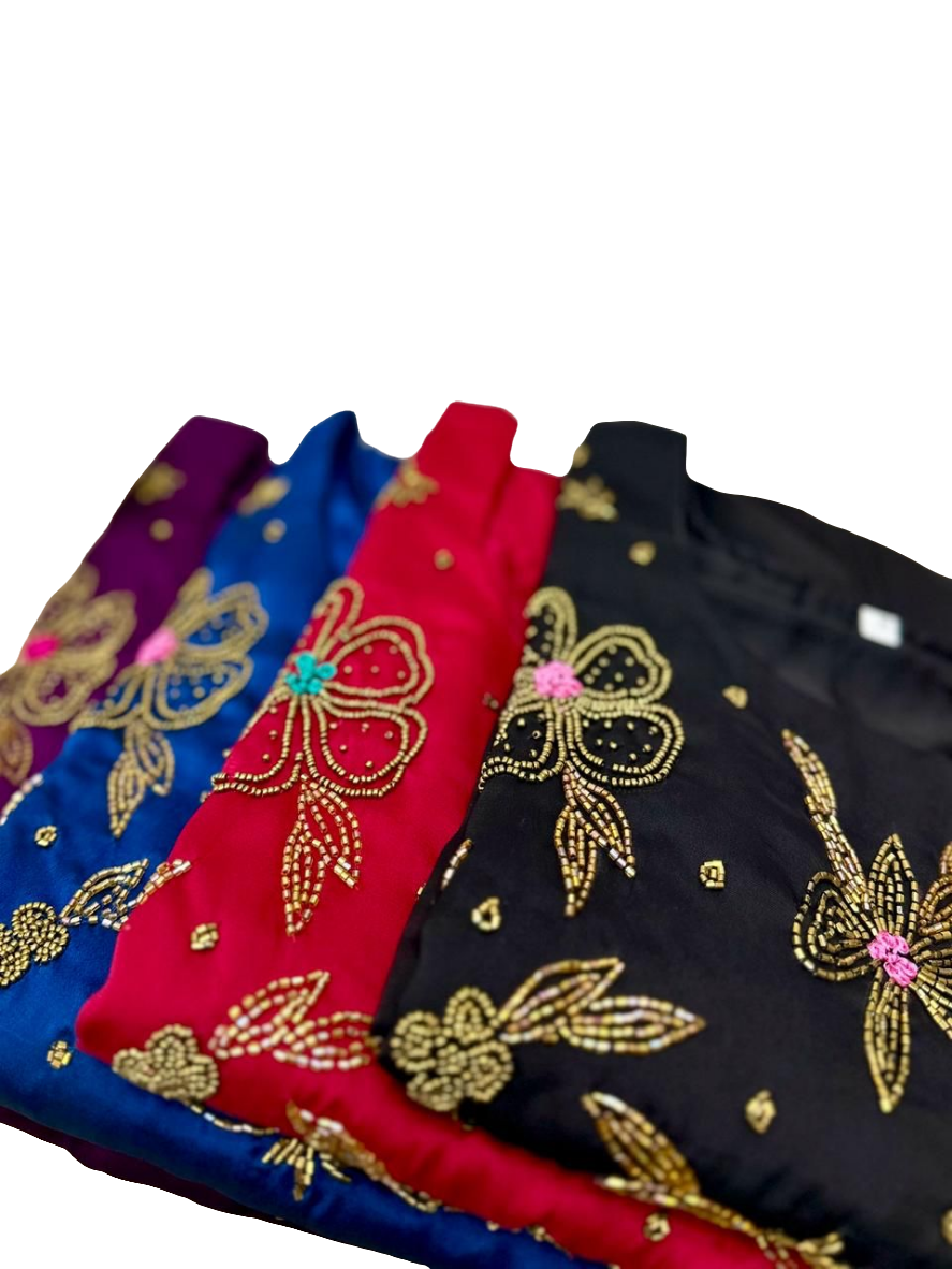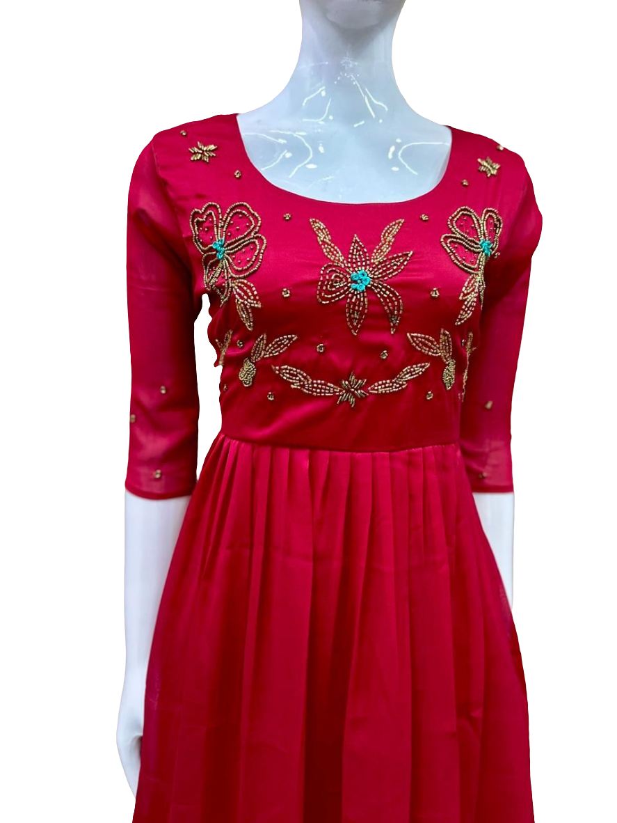 SILKY GEORGETTE FABRIC STTICHED WITH CREPE LINNING